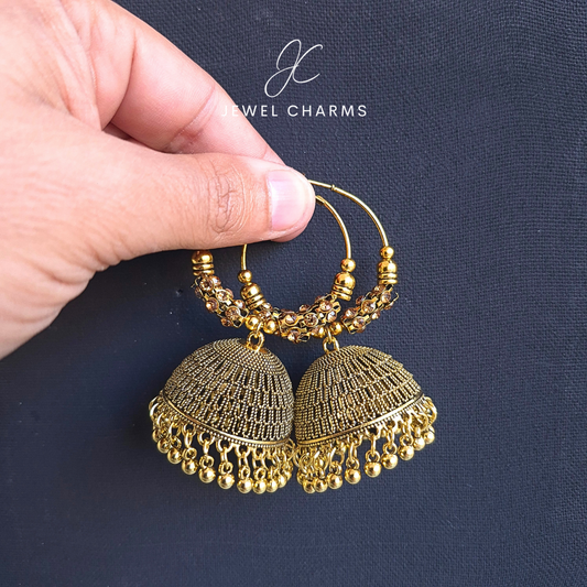 Golden Antique Sheesha GemStone Chand Baali Jhumka