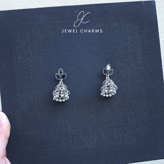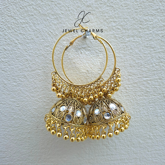 Silver Stone Antique Golden Triple Sahara Jhumkay