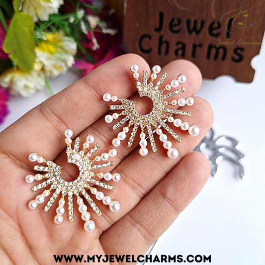 Jc 256 Golden Penta Sheesha Jhumki with white Pearls
