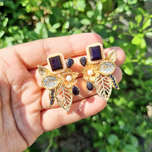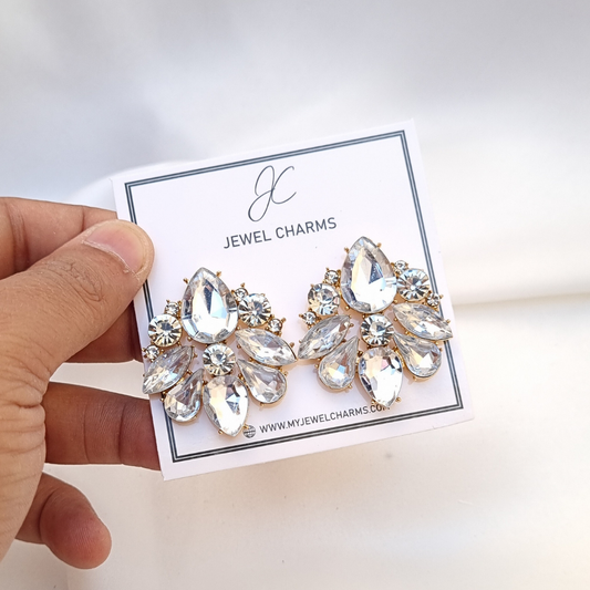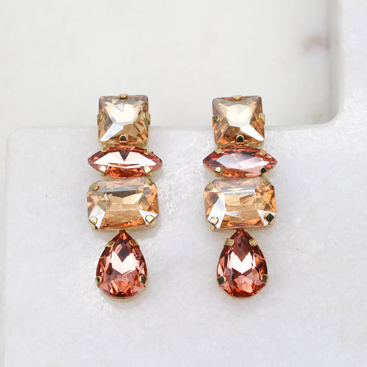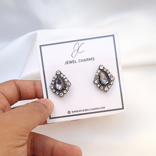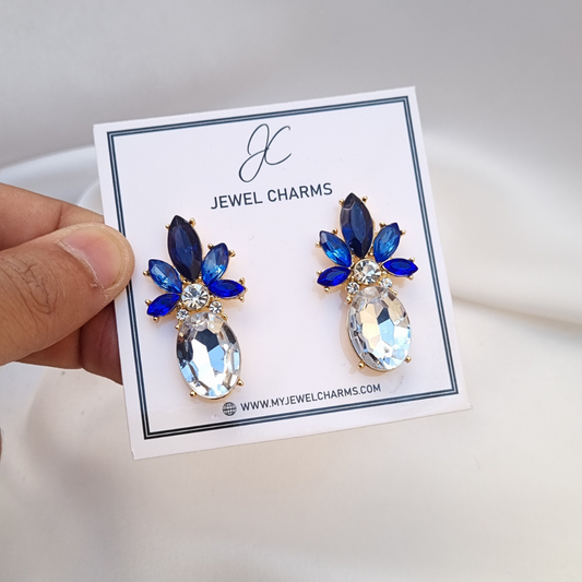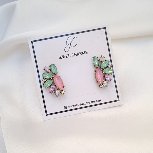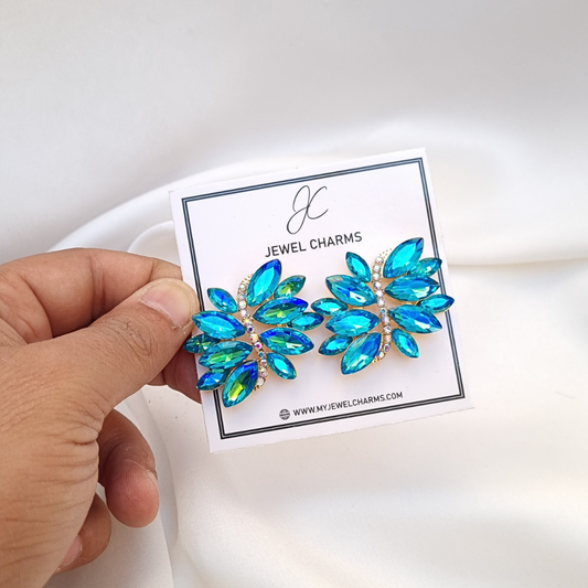 Blue Green Rhombus Zircon Cut Earrings JCEC 137