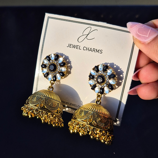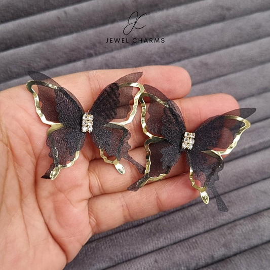 Black Net Butterfly Earrings Golden Base JCEC 18