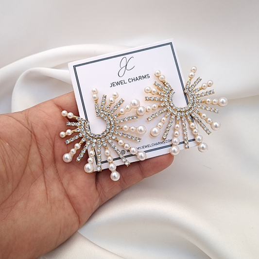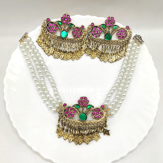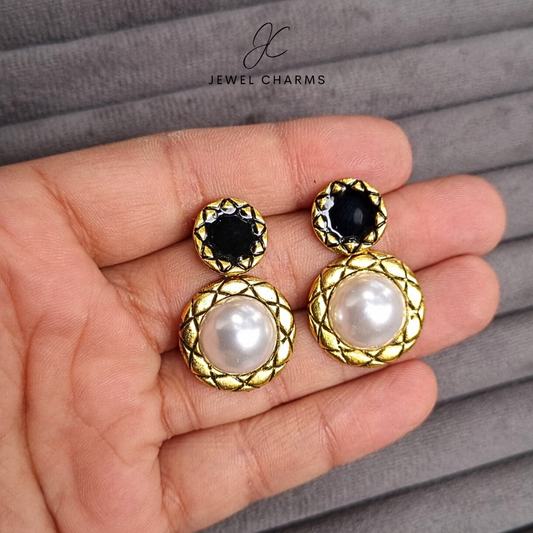 Antique Golden Pearl Double Sahara Gajra Earrings JCEC 172