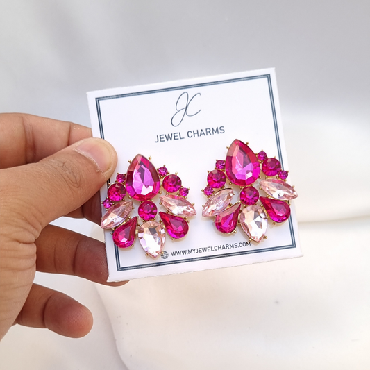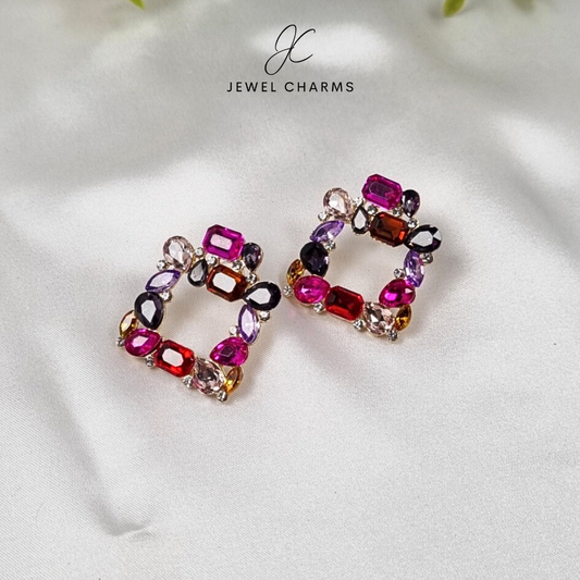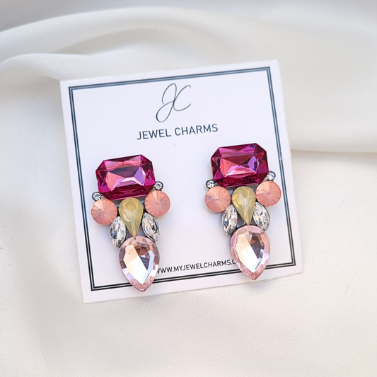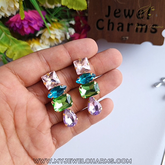 Multi Pink Blue Green tri gem earrings JCEC 06