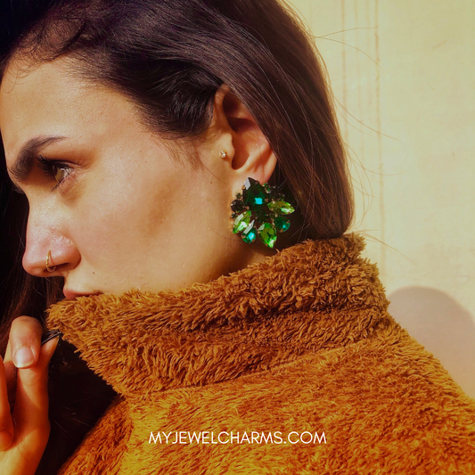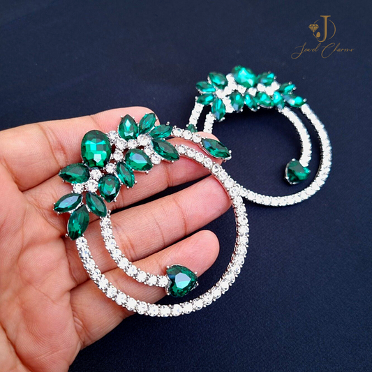 Green Crystal Mega Flower Rhinestone Hoops JCEC 56