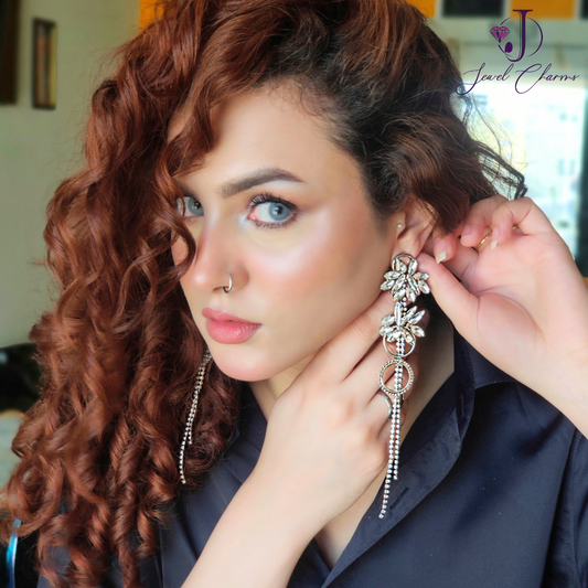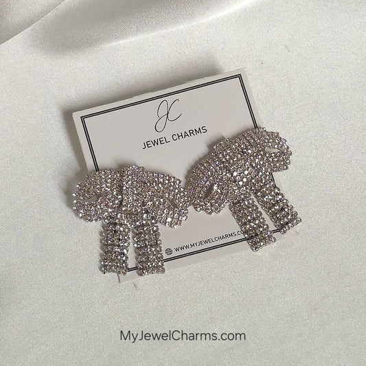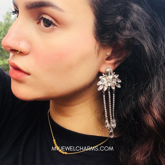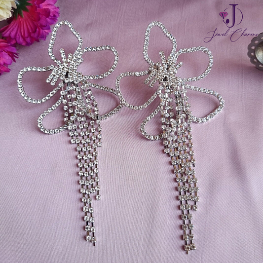 SILVER Square Rhinestone Long Drop Tassles Silver square JCEC 49