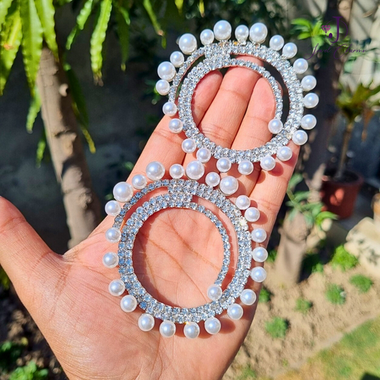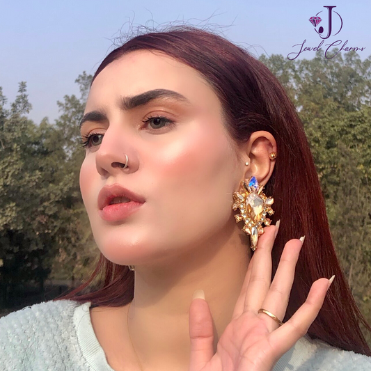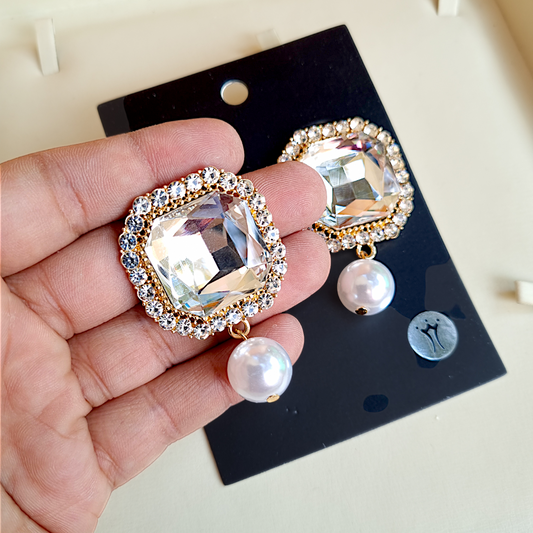 Premium Crystal Mega Pearl Rhombus Cut Earrings Zircon JCEC 32
