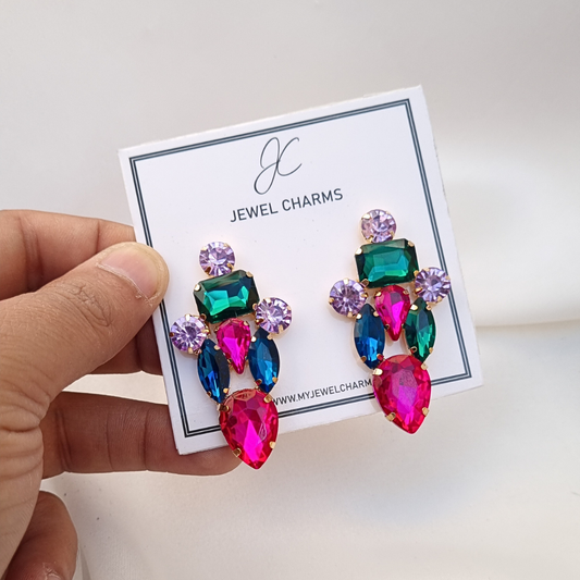 Multi Tetra Crystal Dangle Earrings JCEC 35