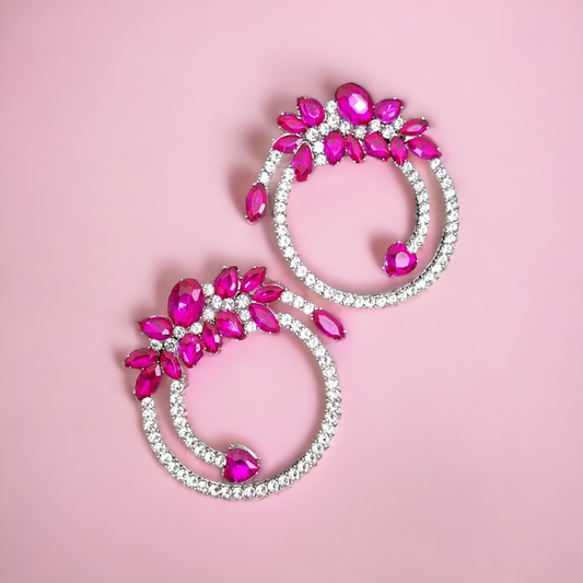 Large Pink Rhinestone Crystal Hoops JCEC 39