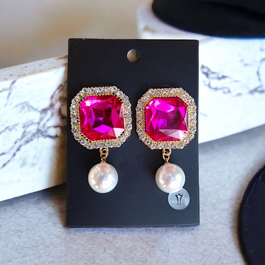 Premium Dark Pink Mega Pearl Rhombus Dangles JCEC 61