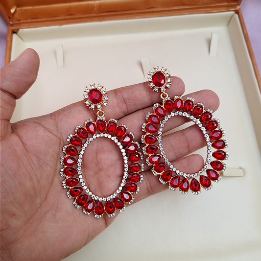 Red Purple Multi Inverted U rhinestone Dangles Long JCEC 159