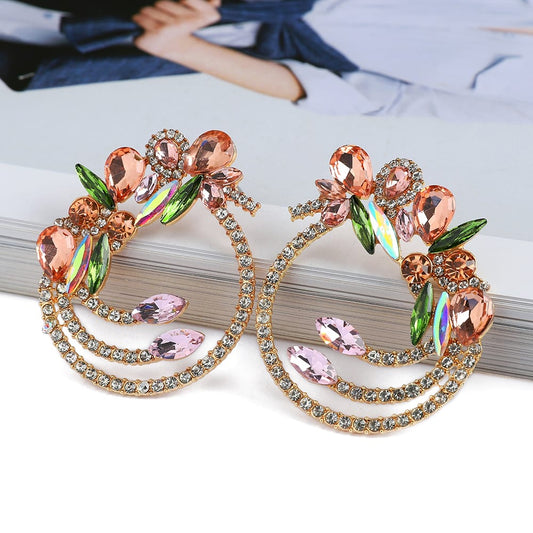 Peach Big stone Crystal champagne Flower Drop Rhinestone Earrings JCEC 45