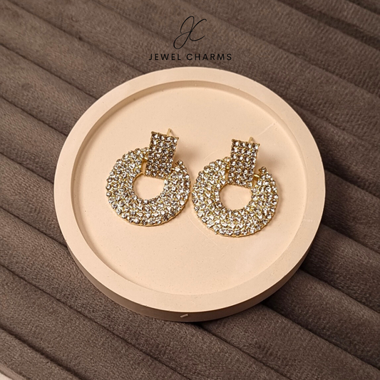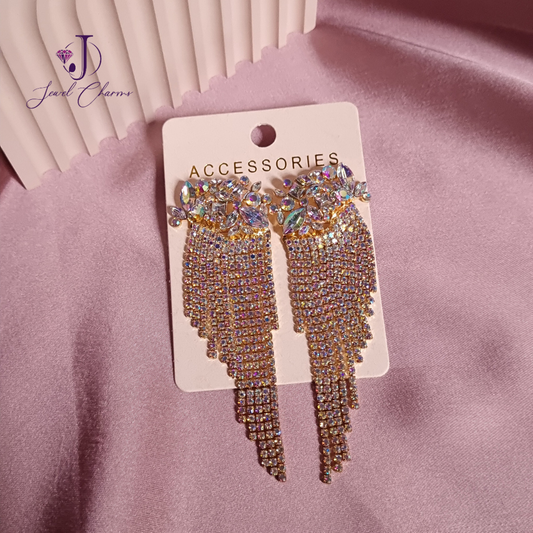 Golden Round Long Fringe Rhinestone Dangles JCEC 40