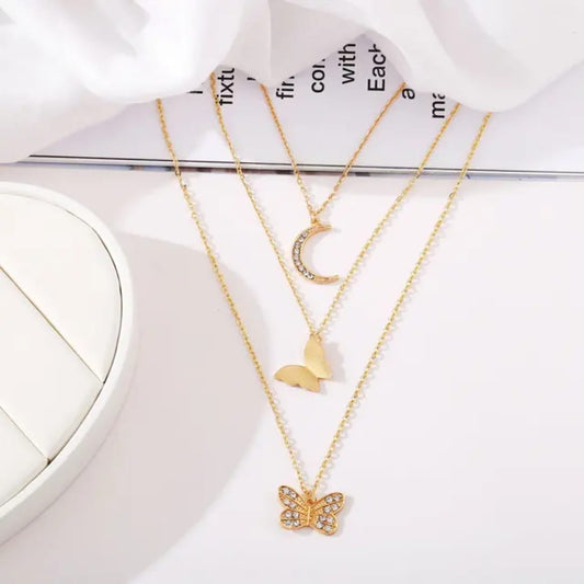 3 layered New Delicate Butterfly Pearl Tri Necklace