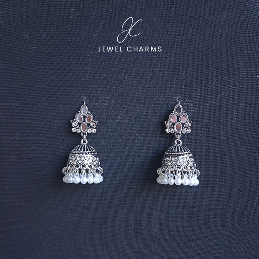 Jc 246 Silver Antique Jhumki with Baby Pink Stone
