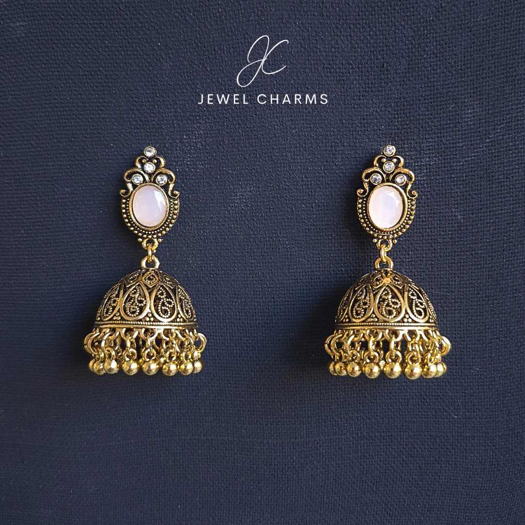 Jc 245 Golden Antique Jhumki with white Stone