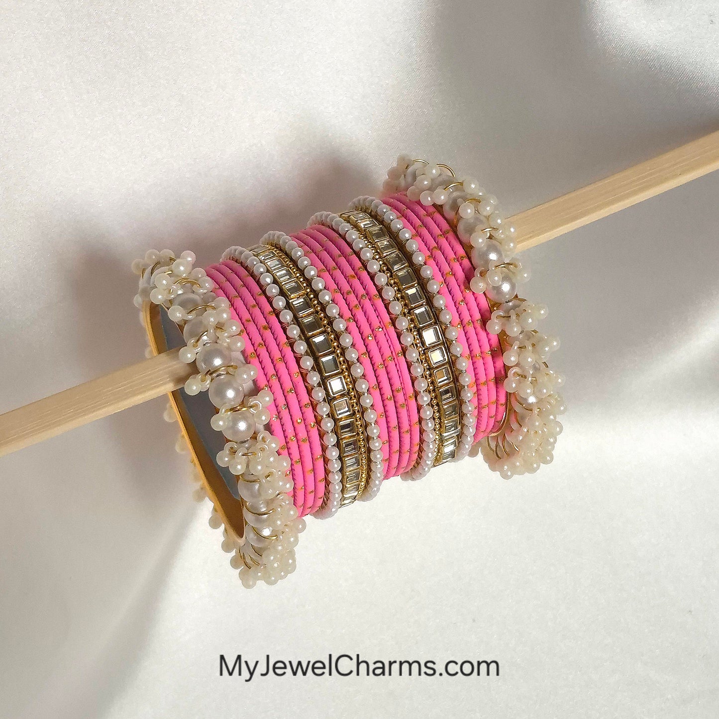 Pink dotted double karra gajra bangles